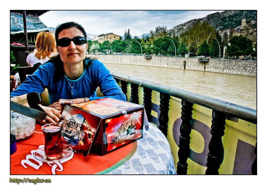 Amasya fotolarının süslediği çörek kutularını alıp, Yeşilırmak kenarında daha önce gözümüze kestirdiğimiz belediye parkında çayla çörekleri götürdük. Çörekler Olcay'dan tam not aldı. Yeşilırmak usul usul akarken bizde aldığımız tanıtım broşürlerine gömüldük.