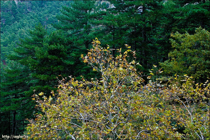 Çok acıktık yemek yedikten sonra oyalanmadan inişe geçiyoruz. İniş farklı bir rotadan ve kanyon içersinden. Derken hava karardı ve yağmur yağmaya başladı. Yağmur u tüm pahalı elektronikleri çantaya tıkmam gerektiği için sevmiyorum. Neyseki uzun sürmedi ve ben tekrar fotograf makinamı çıkarttım. Yağmur sonrası yağmur damları yaprakların üzerinde harika durduğundan bunları kaçırmamak gerek. Birde ıslak ortam koyu ve doygun bir renk sağlıyor. Yani doğal olarak saturasyon sağlanıyor.